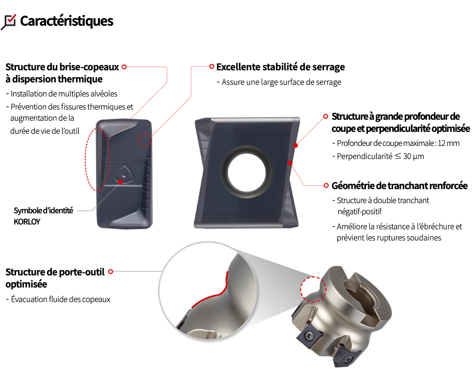 • Type tangentiel offrant une fixation solide et utilisation multiple pour une productivité accrue
