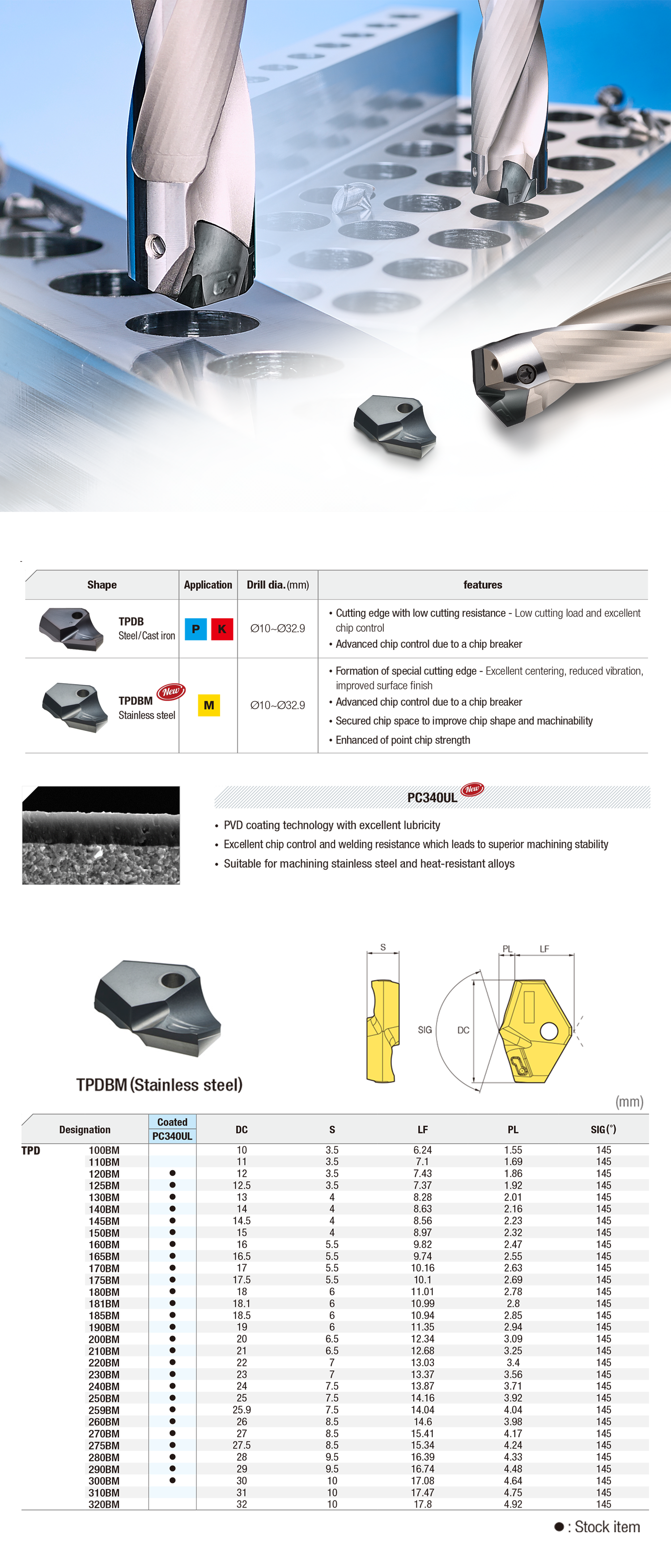 [TPDB Plus Drill] TPDBM Insert for Machining Stainless Steel