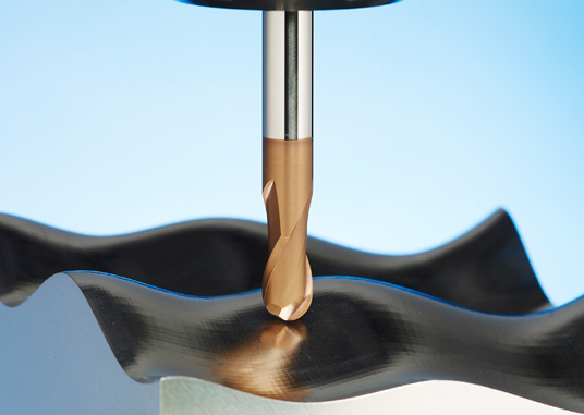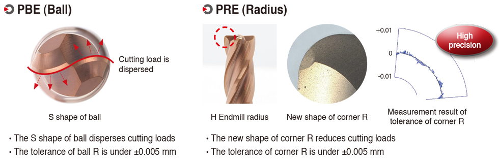 High hardened & heat treated steels (HRC 45~70) used in parts for automobiles and molds offer excellent durability and effective wear resistance. This hardened steel material apparently causes massive tool wear on relief surface involving high temperatures in high speed and dry machining. Additionally, large impact during machining results in chipping and tool breakage.