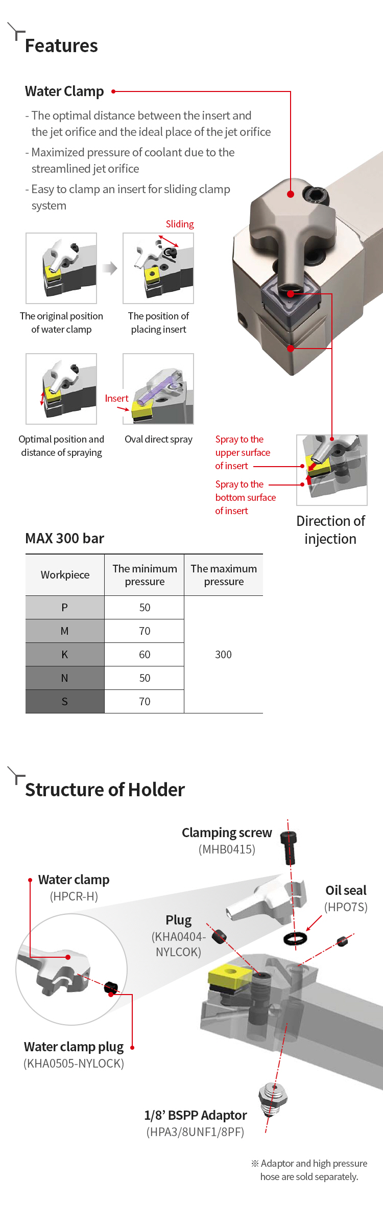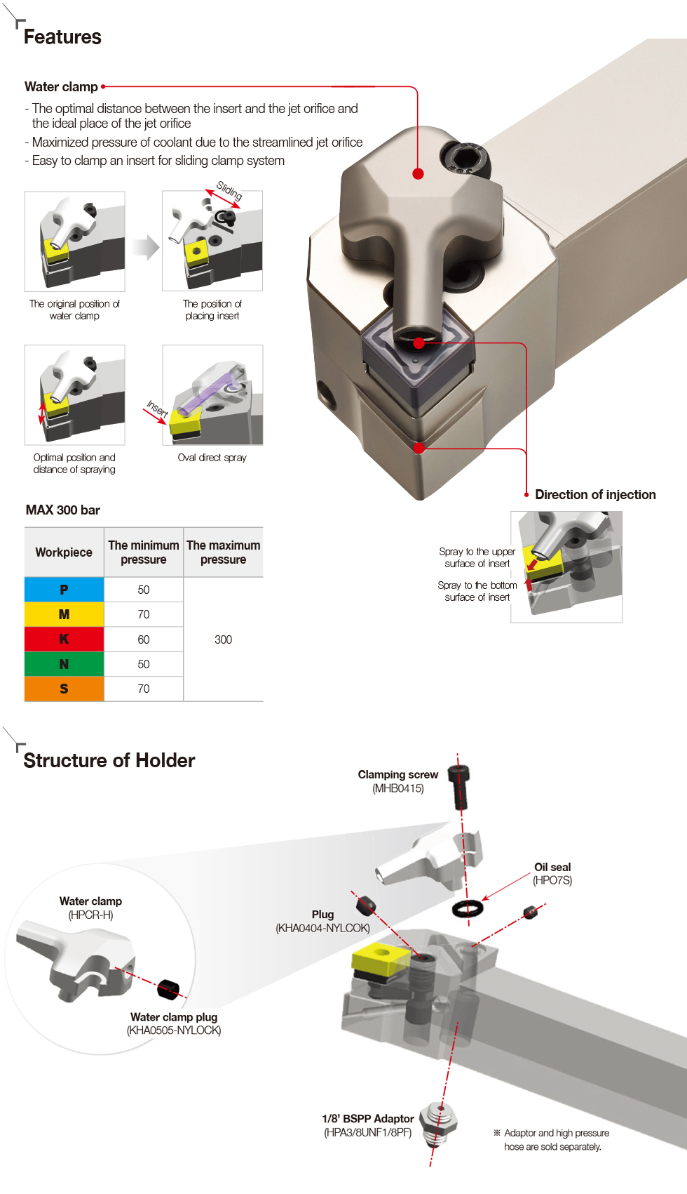 KHP Coolant will have the optimal distance between the insert cutting edge and the jet orifice, the ideal place of the streamlined jet orifice of the coolant. KORLOY’s new KHP sprays high pressure coolant enhancing chip control and wear resistance.