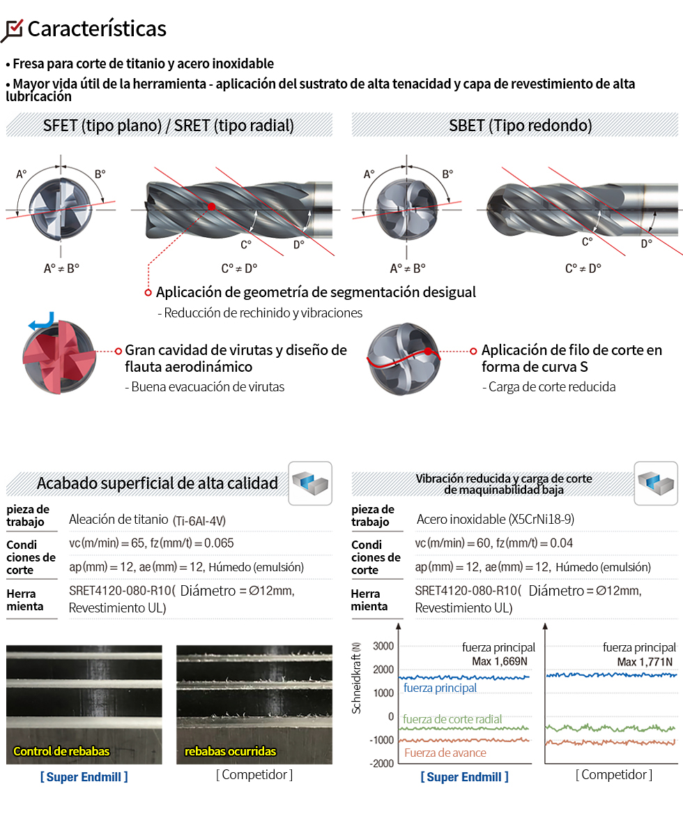 Los materiales representativos difíciles de cortar son el titanio y el acero inoxidable y tiene características de baja conductividad térmica y resistencia a la corrosión. Estas excelentes características actúan como una de las principales causas de que el mecanizado sea difícil y causen problemas como una vida útil corta de la herramienta y una productividad baja. Para resolverlo, KORLOY lanzó recientemente Super Endmill For Ti, que se especializa en titanio y acero inoxidable.