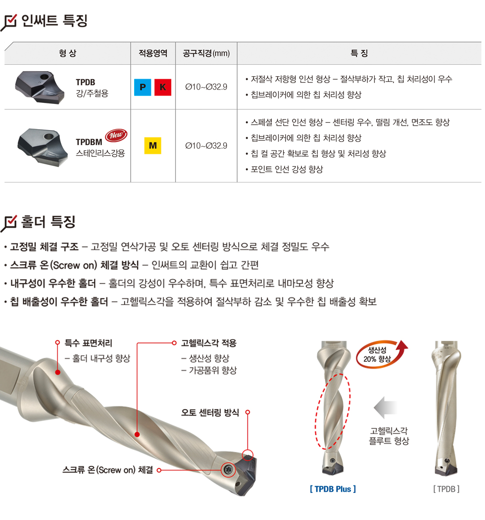 • 고품위 & 고능률 탑 솔리드 인덱서블 드릴