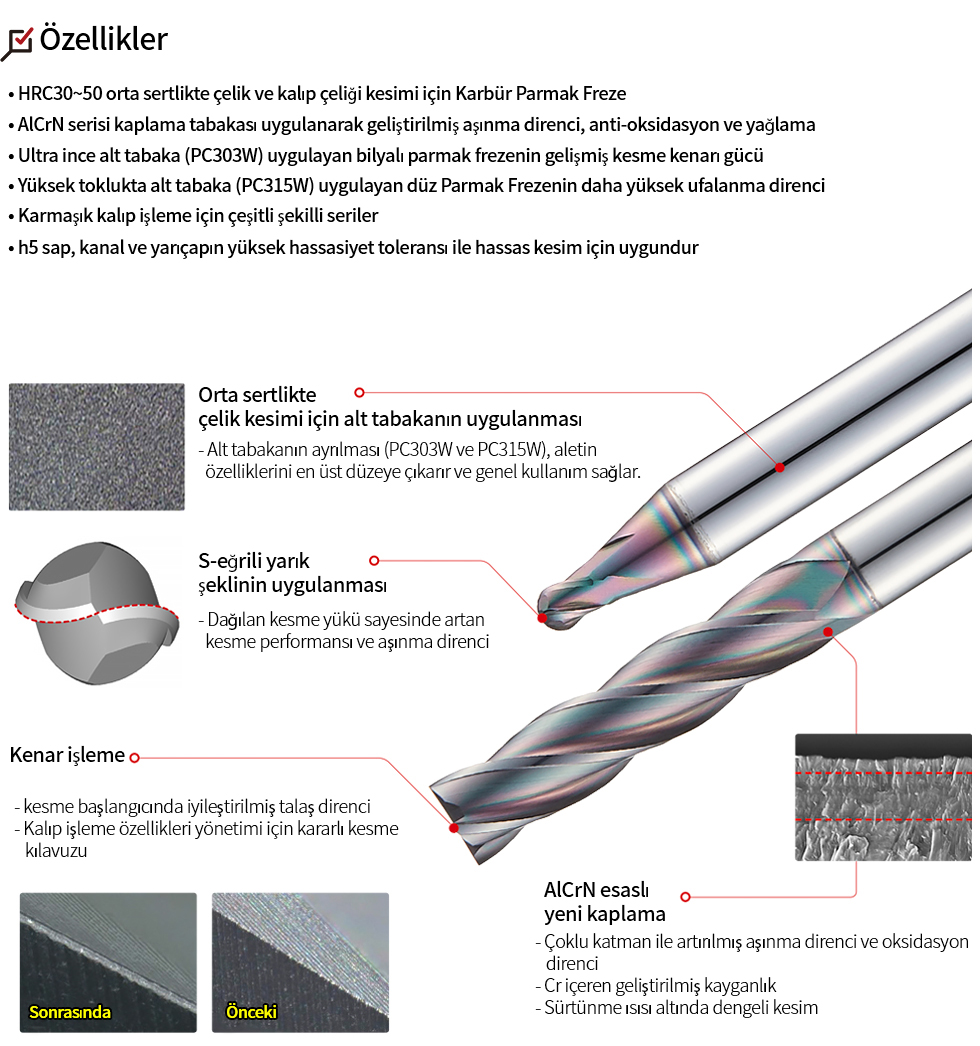 • Optimize edilmiş malzemeler ve yeni kaplamalarla mükemmel takım ömrü"